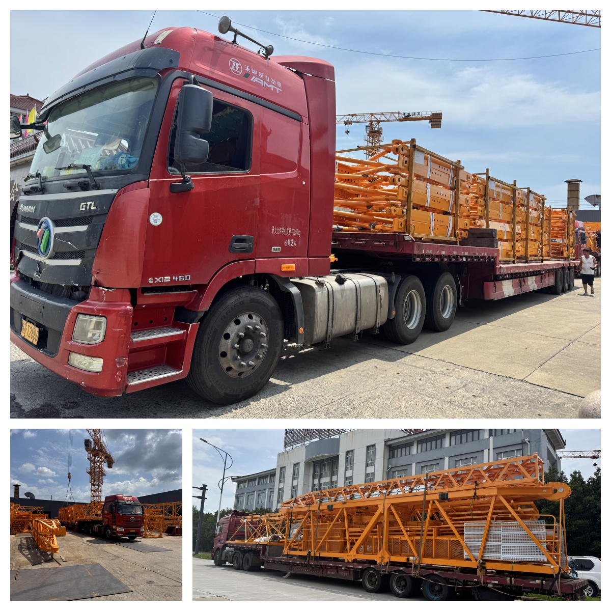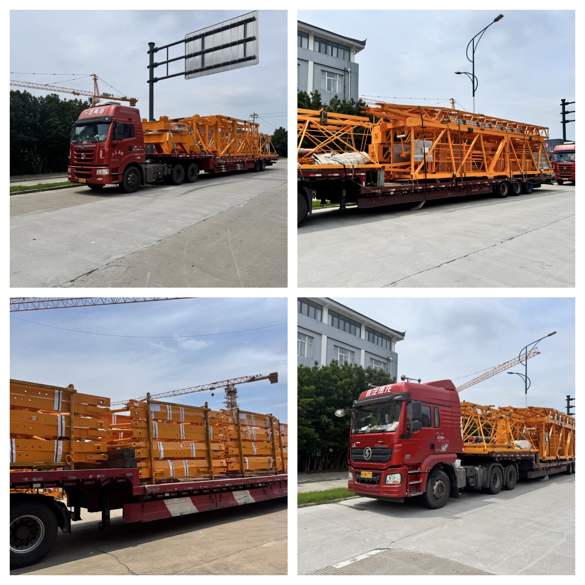 To QTP200 (7020) fladtårnkraner, kendt for deres høje løftekapacitet og stabilitet, blev omhyggeligt pakket og sendt til Guinea for at støtte storstilet infrastrukturudvikling i regionen.